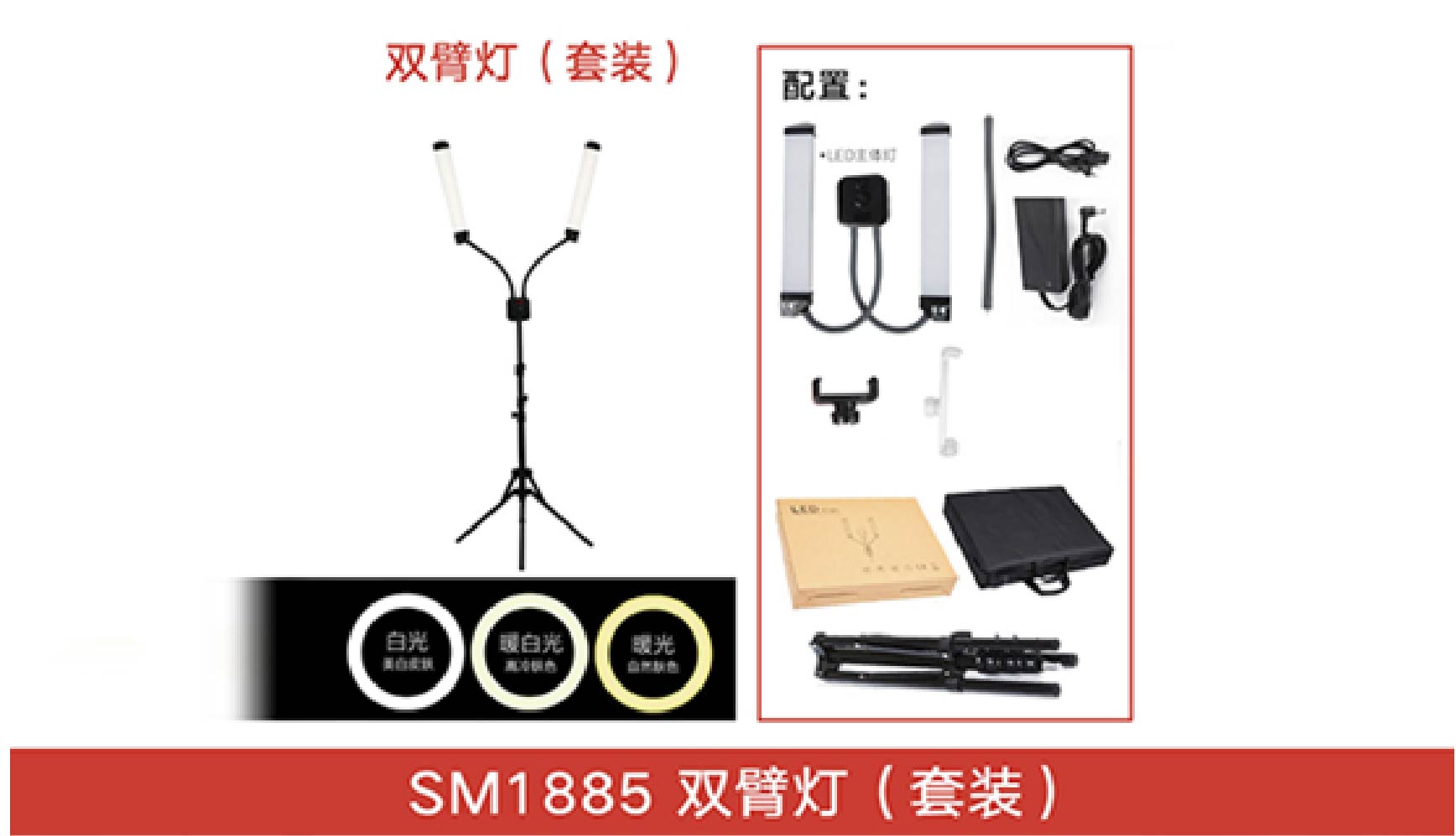 遥控双臂灯(M1885)有无遥控可选,万能方位调节,打光更全面。